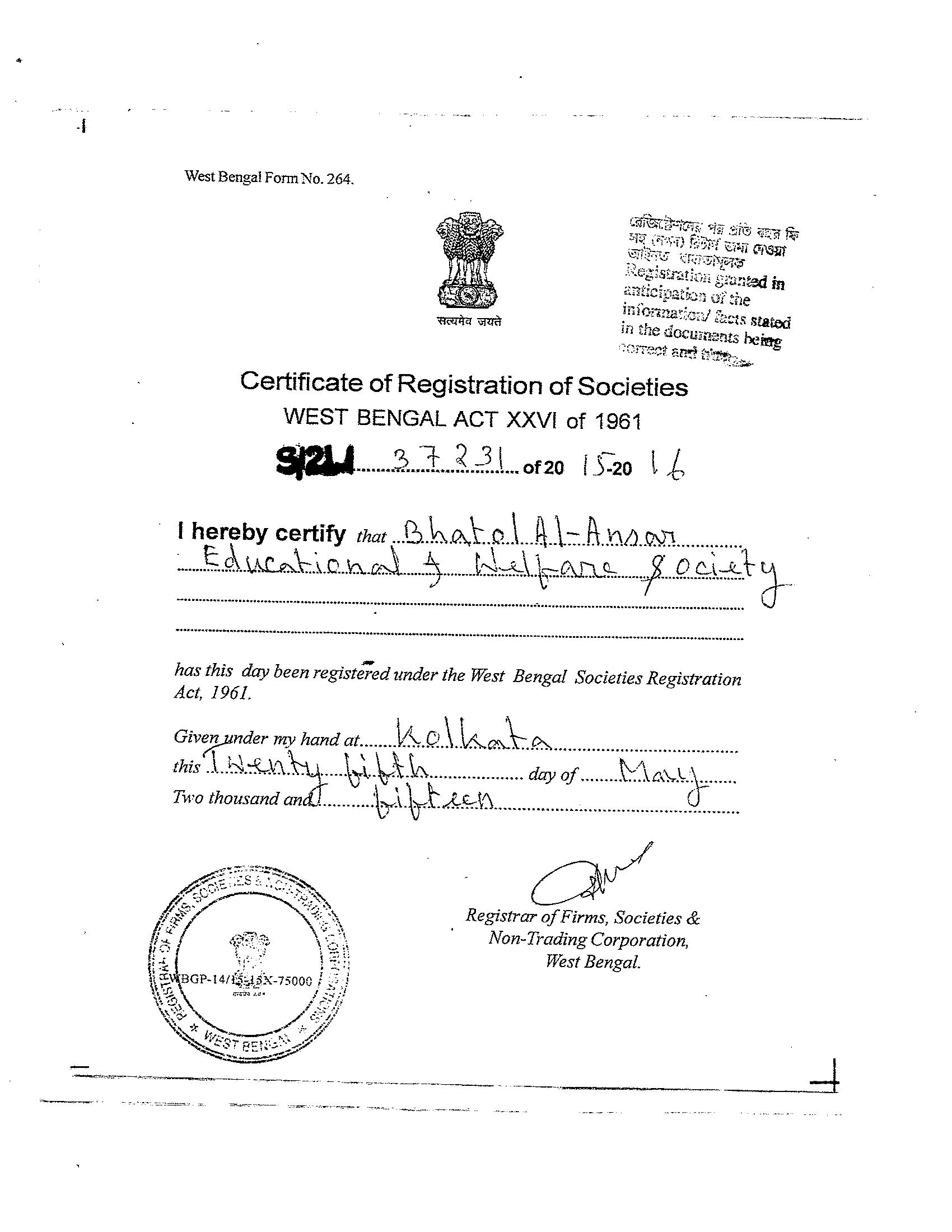 Registration Certificate